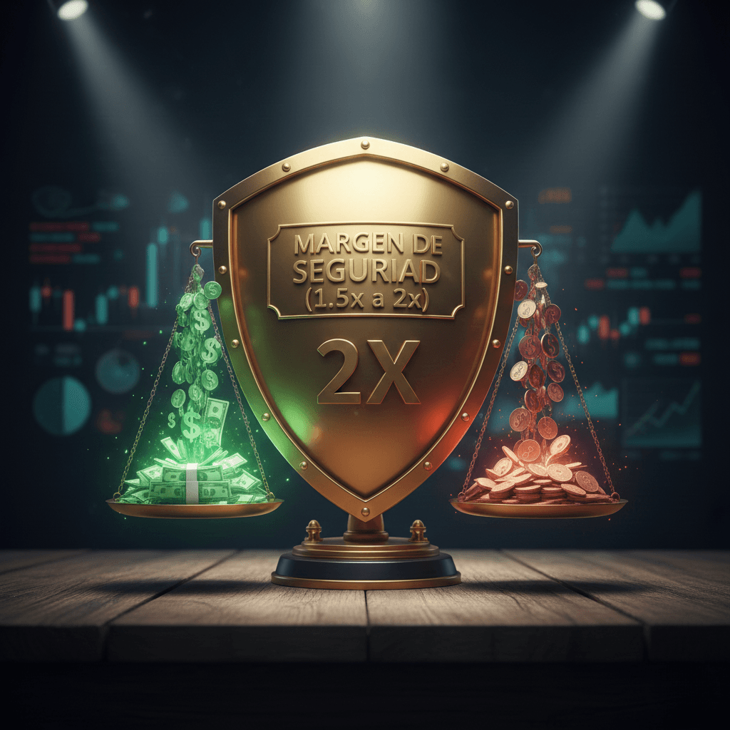 El e-book aborda este tema con el concepto de Margen de Seguridad. Simplemente tener un ROI positivo no es suficiente. Te recomienda que tu ganancia generada supere el costo total del préstamo en 1.5 a 2 veces. Esto asegura que tengas un colchón que te proteja de caídas inesperadas y minimice el riesgo